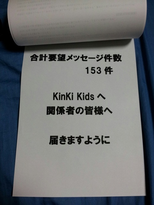 また、余談にはなりますが堂本兄弟へのメッセージ、以前のスマキンキ企画のようにハガキ要望も思いが伝わる手段かなと思います。