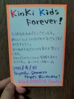 ハガキのデザインを使用し、『4/10 Tsuyoshi.DOMOTO Happy Birthday!』と文字を入れて簡単なメッセージを葉書に書いて送付しました。
